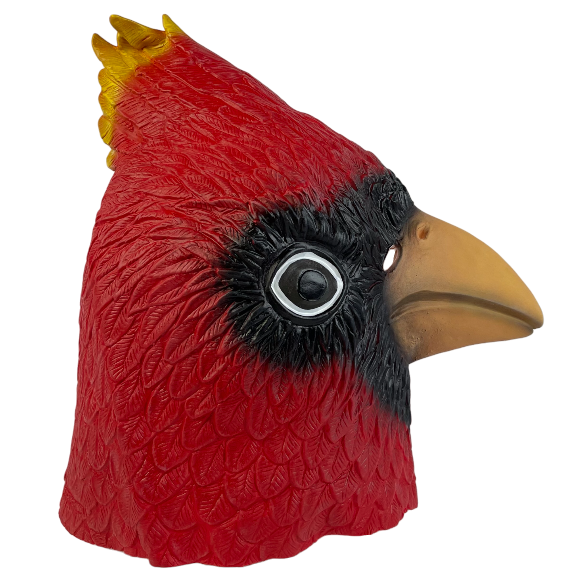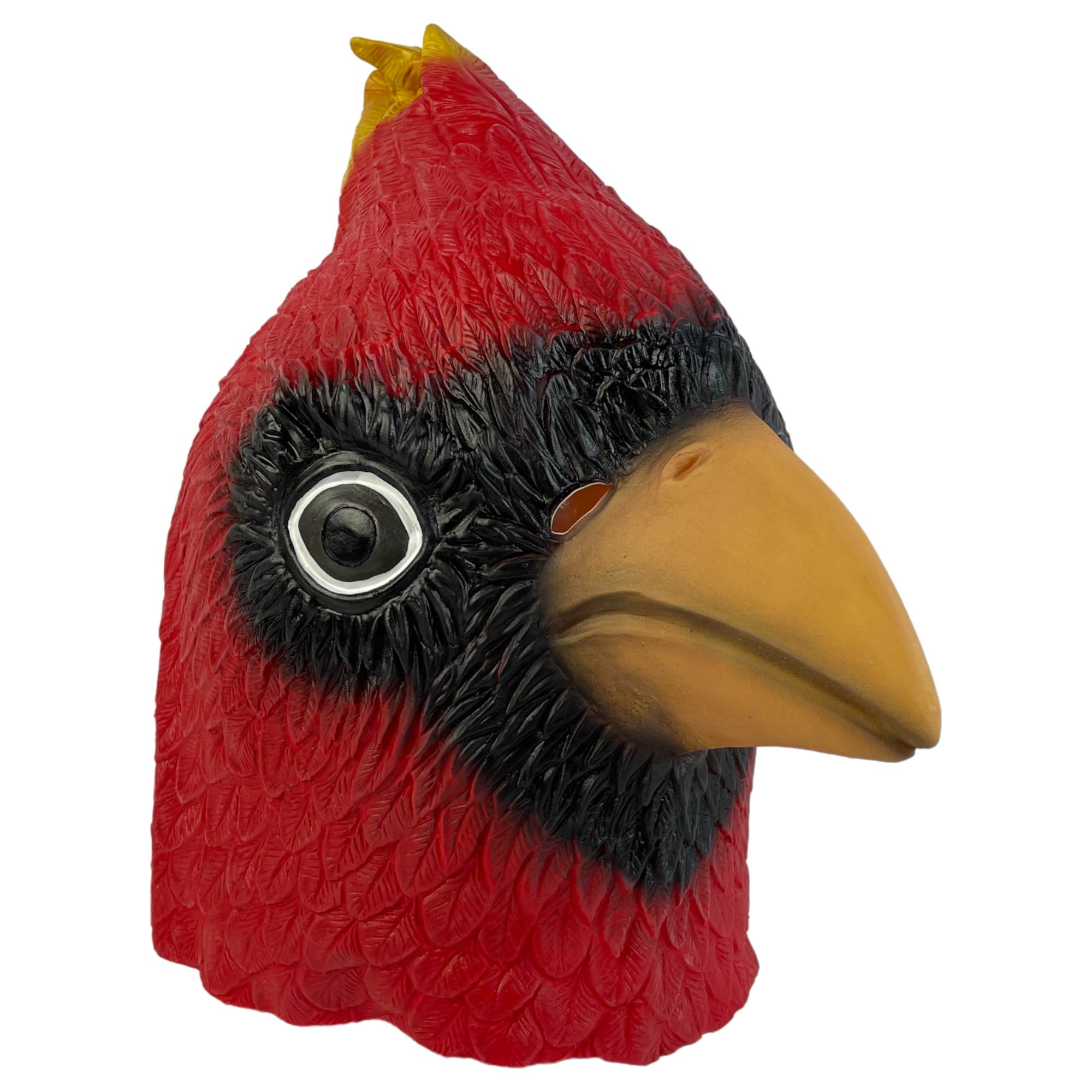- This red woodpecker mask has a universal size and is suitable for adults.